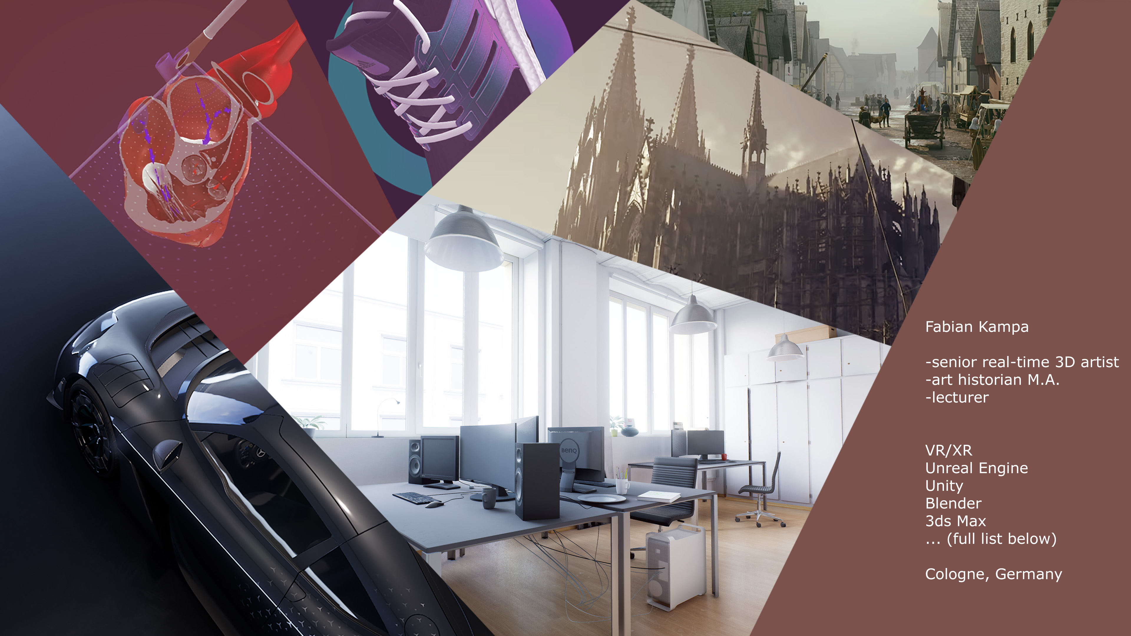 I´m a senior 3D artist and art-historian from Cologne, Germany. I focus on real-time 3D development with tools like Unreal Engine and Blender for different platforms including VR.